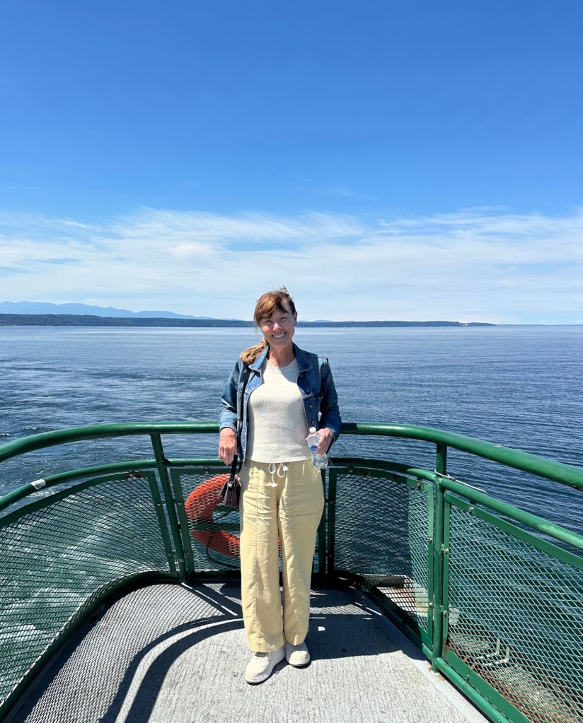 I chose the Dungeness/Greyhound bus to travel from Seattle to Port Angeles, about four hours with stops along the way. I was pleasantly surprised when I saw that the bus was boarding a ferry! Bus passengers got out to enjoy the view on the deck for the 20 minute Bainbridge Island Ferry ride, which, as it turns out, is the shortest route from Seattle to Olympic National Park.