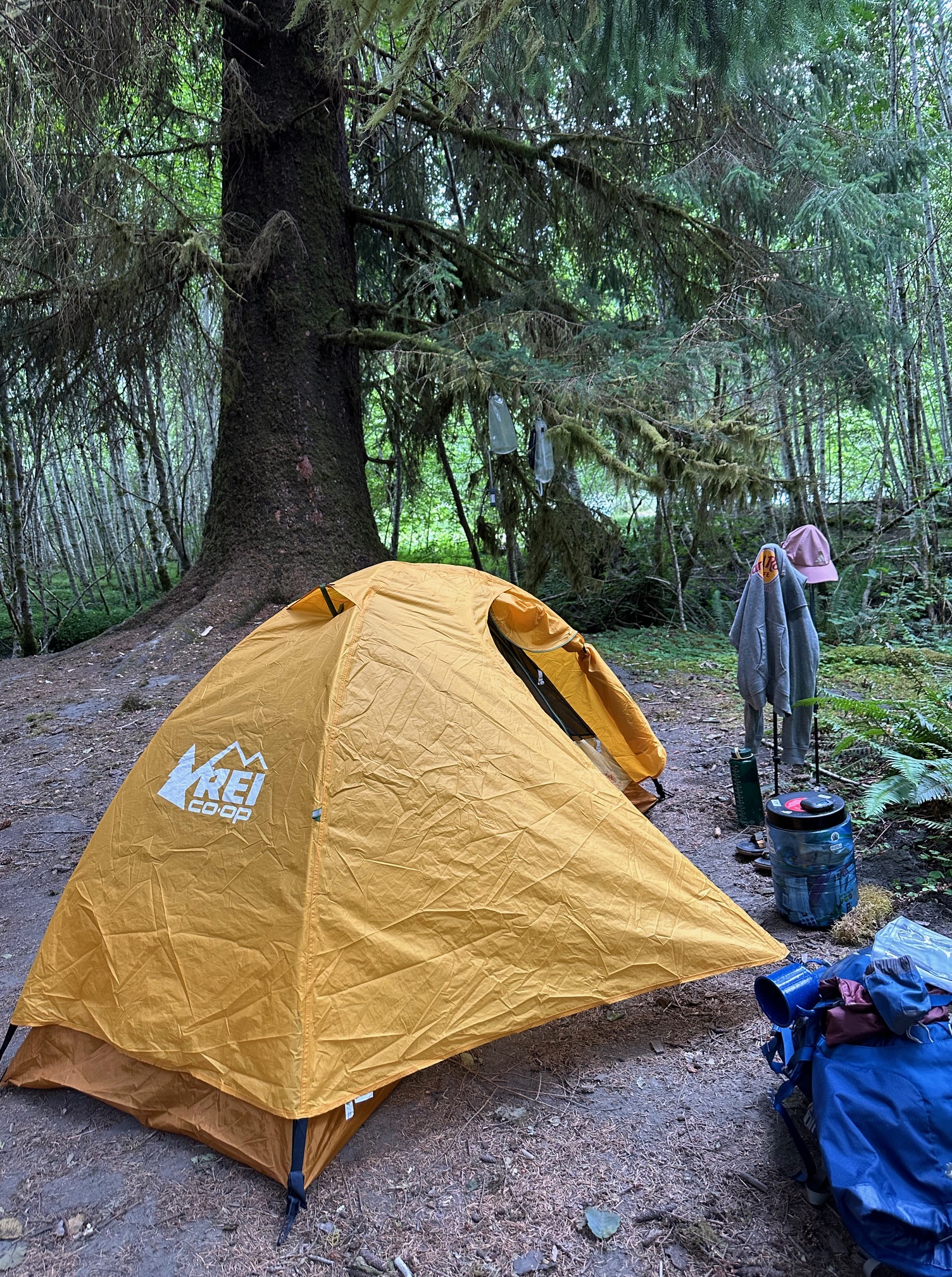Our meals were from Backpacker’s Pantry and Mountain House, dehydrated meals to which we added boiling water—glacier water from the Hoh, filtered, then heated using a small camp burner. The meals were very tasty, and filling! My choices were peanut butter and banana oatmeal for breakfasts; and chicken fettuccini alfredo for dinners—and always, coffee (which was Starbucks Columbian instant). Snacks included trail mix; granola and Cliff bars; fruit, date, nut bars; and electrolyte drinks, as well as energy chews (small gummy-type chewables with electrolytes). Lunches were pre-made sandwiches, mine being peanut butter with banana chips.
